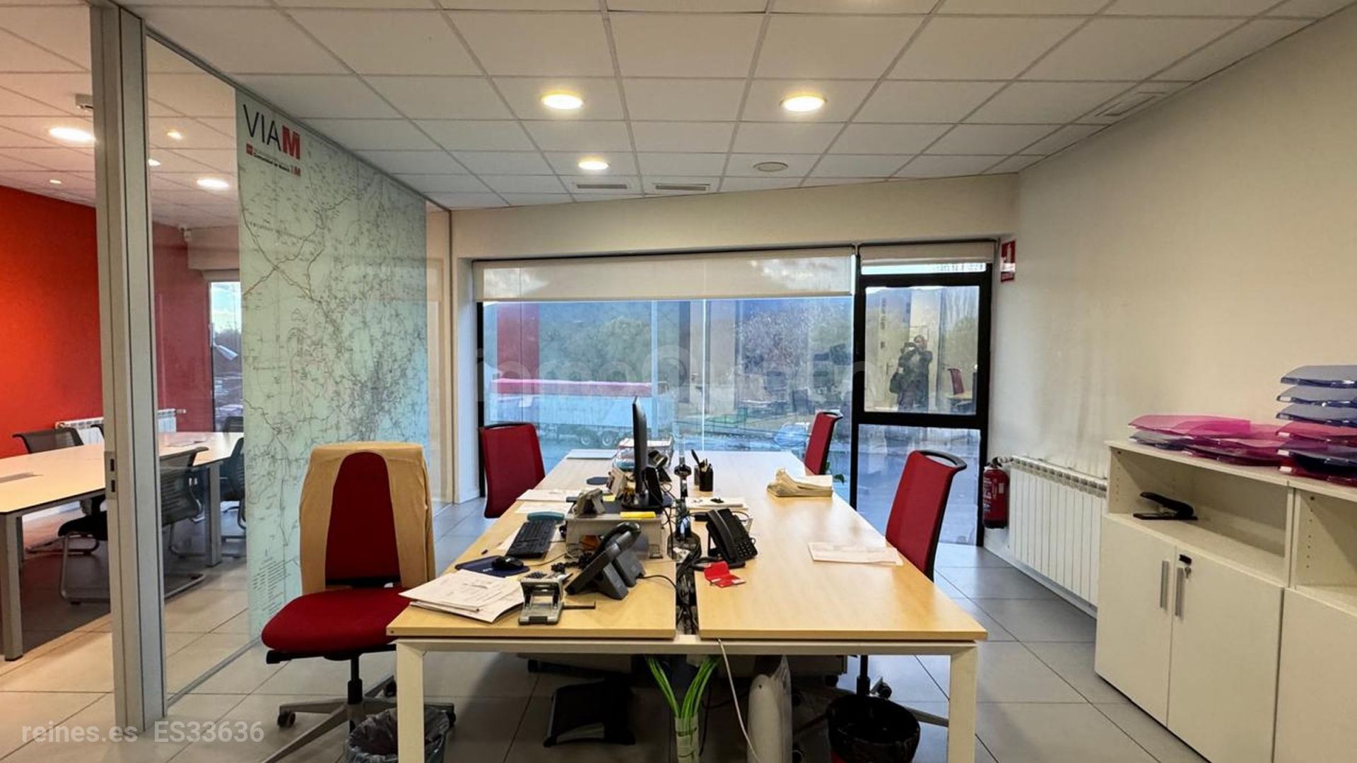 En la planta baja encontraremos una oficina muy luminosa, ideal para atención directa o recepción, dos baños y una nave muy amplia, perfecta para maniobrar y almacenar, con capacidad incluso para coches y camiones. Esa distribución facilita la operativa diaria y optimiza los flujos de trabajo. La planta superior alberga 112m de oficinas modernas, equipadas con suelo técnico y aire acondicionado, además de una cocina office totalmente equipada.