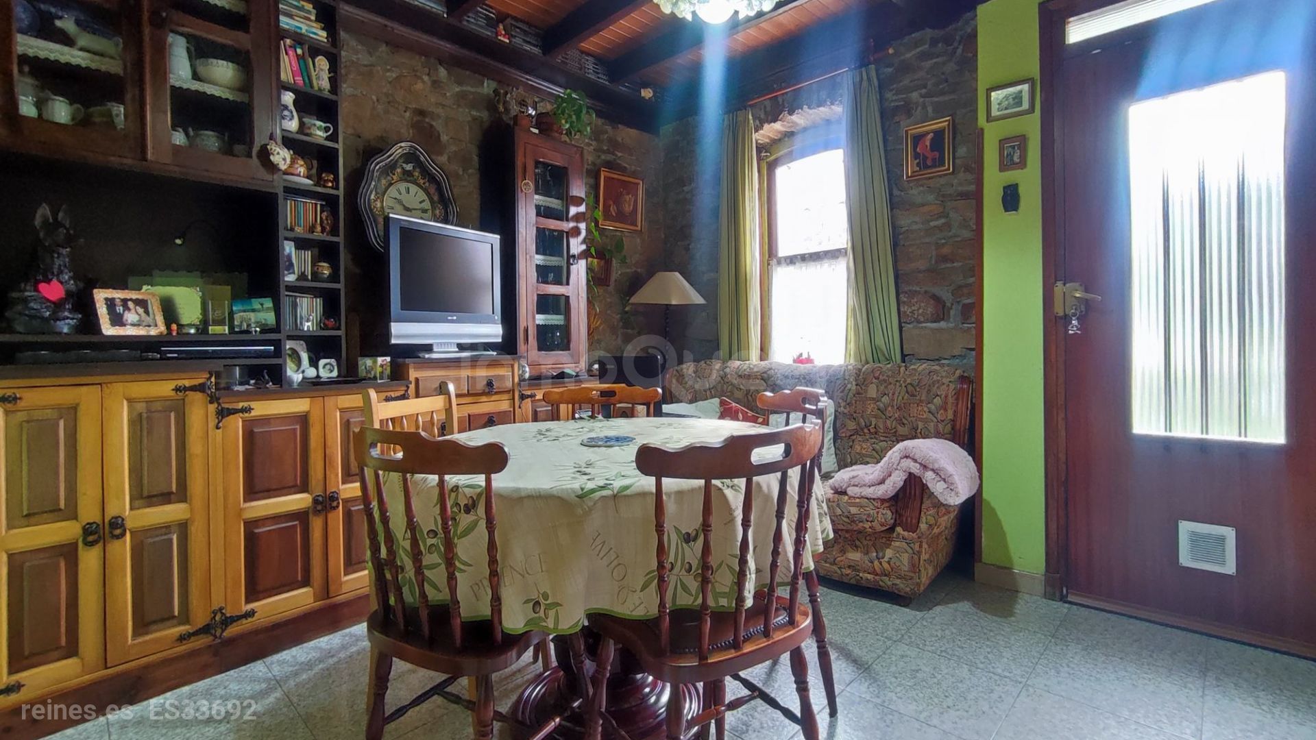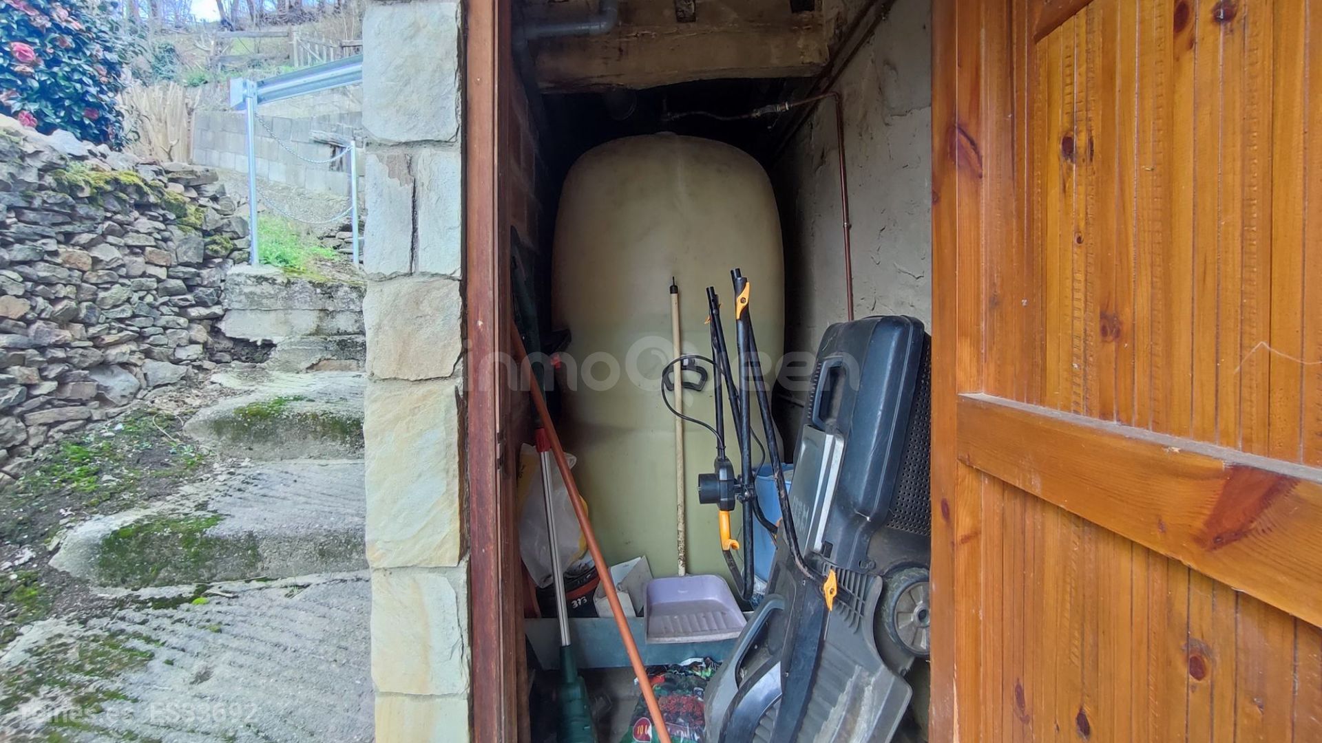 Tiene el tejado en buen estado, calefacción y agua caliente mediante gasoil con depósito de mil litros, ventanas de madera y suelo de gres en la planta inferior y de parqué en la planta superior.